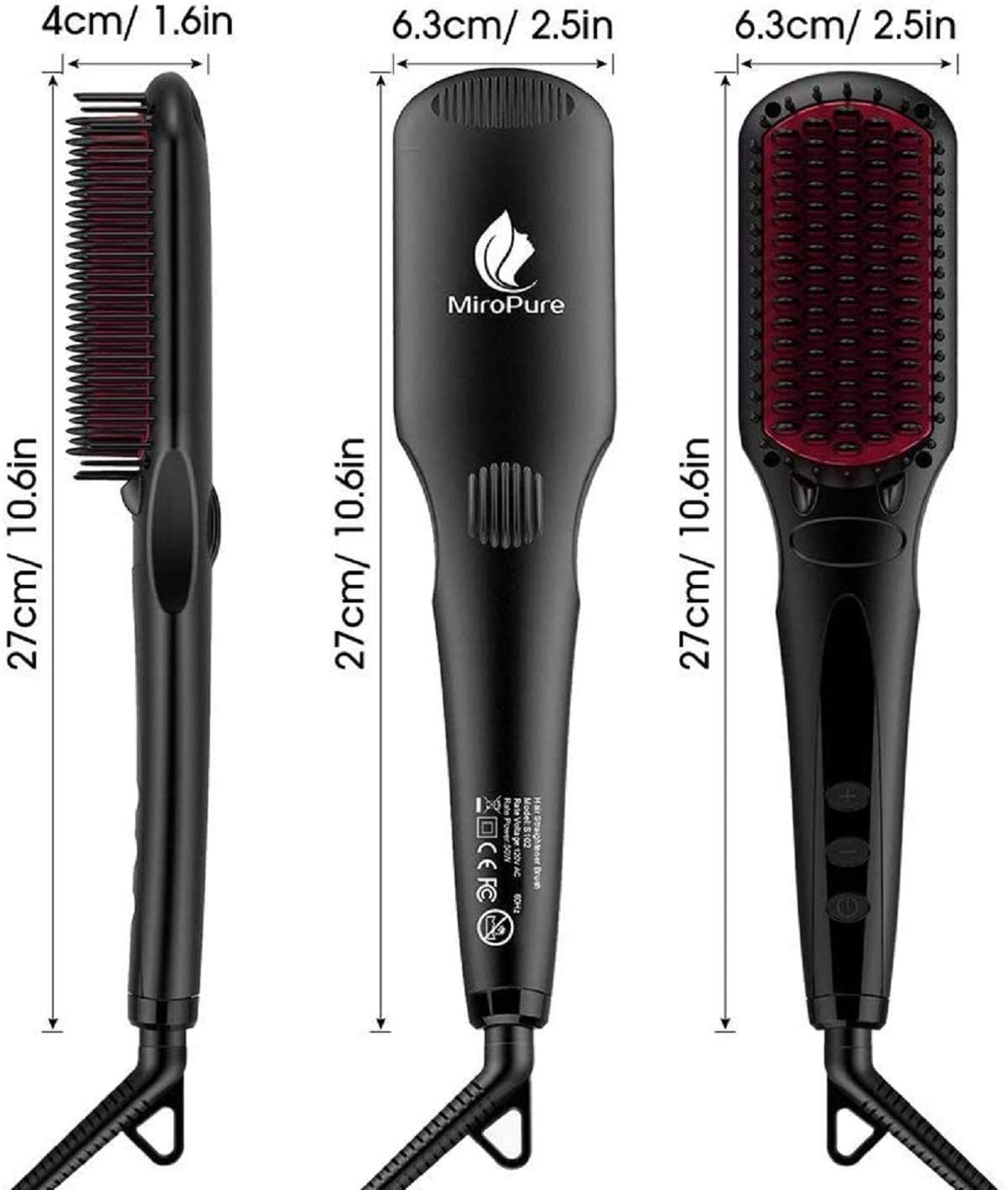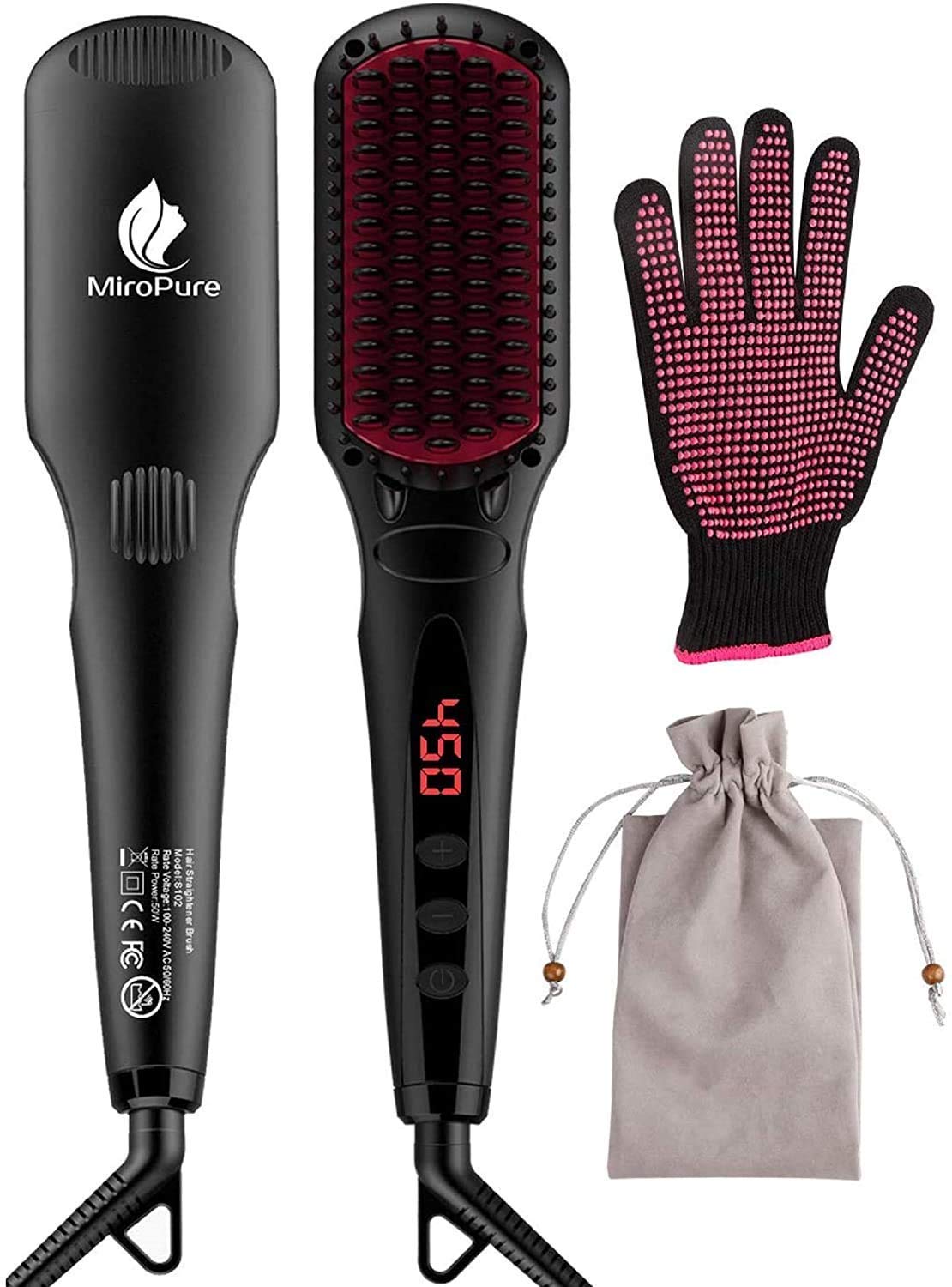 - Double ionic generator for healthy silky hair: This MiroPure Hair straightener brush gives your hair a smooth, silky, natural lustrous look by sealing the hair cuticles, thus reducing split ends and knotting. Get silky-looking natural and healthy hair, rather than a flat burnt look.