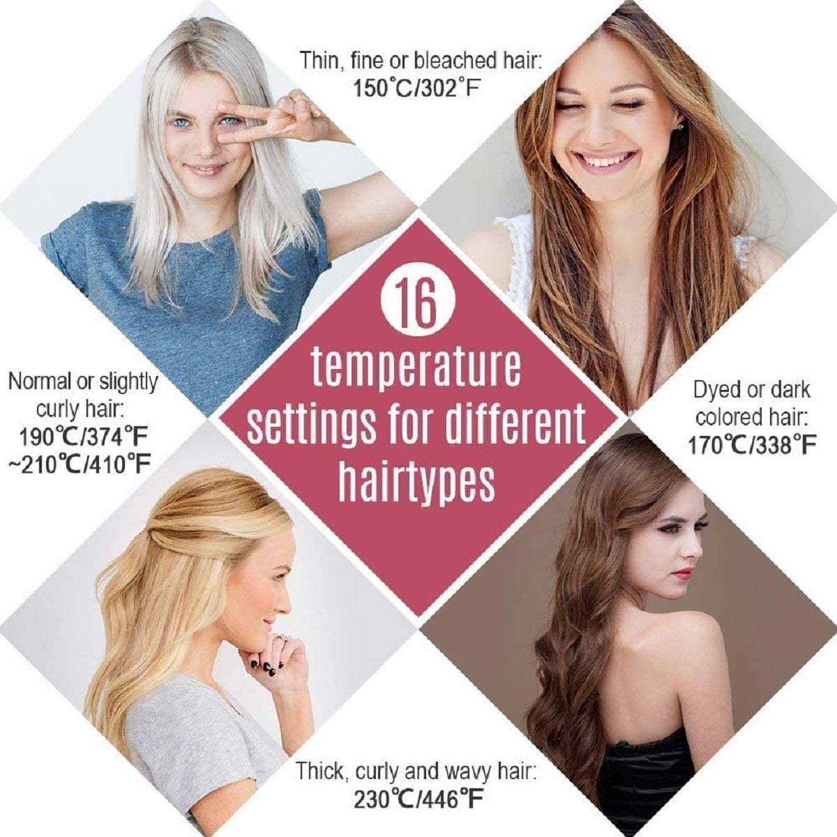 - New mch heating: the mch (metal ceramic heater) gives even heat distribution and quick temperature recovery time. The adjustable heat temperature from 150°c (300°F) to 230°c (450°F) allows you to match your specific hair type: thin, fine, Wavy or curled. In just one minute, It can heat up to the desired temperature and offer great results.